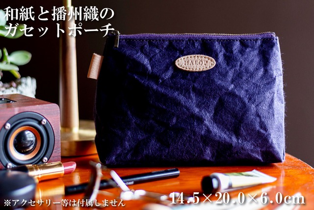 【HALOP公式】和紙と播州織のガセットポーチ(紫色) 杉原紙 パープル アクセサリー入れ 小物入れ 化粧ポーチ HALOP ハロップ