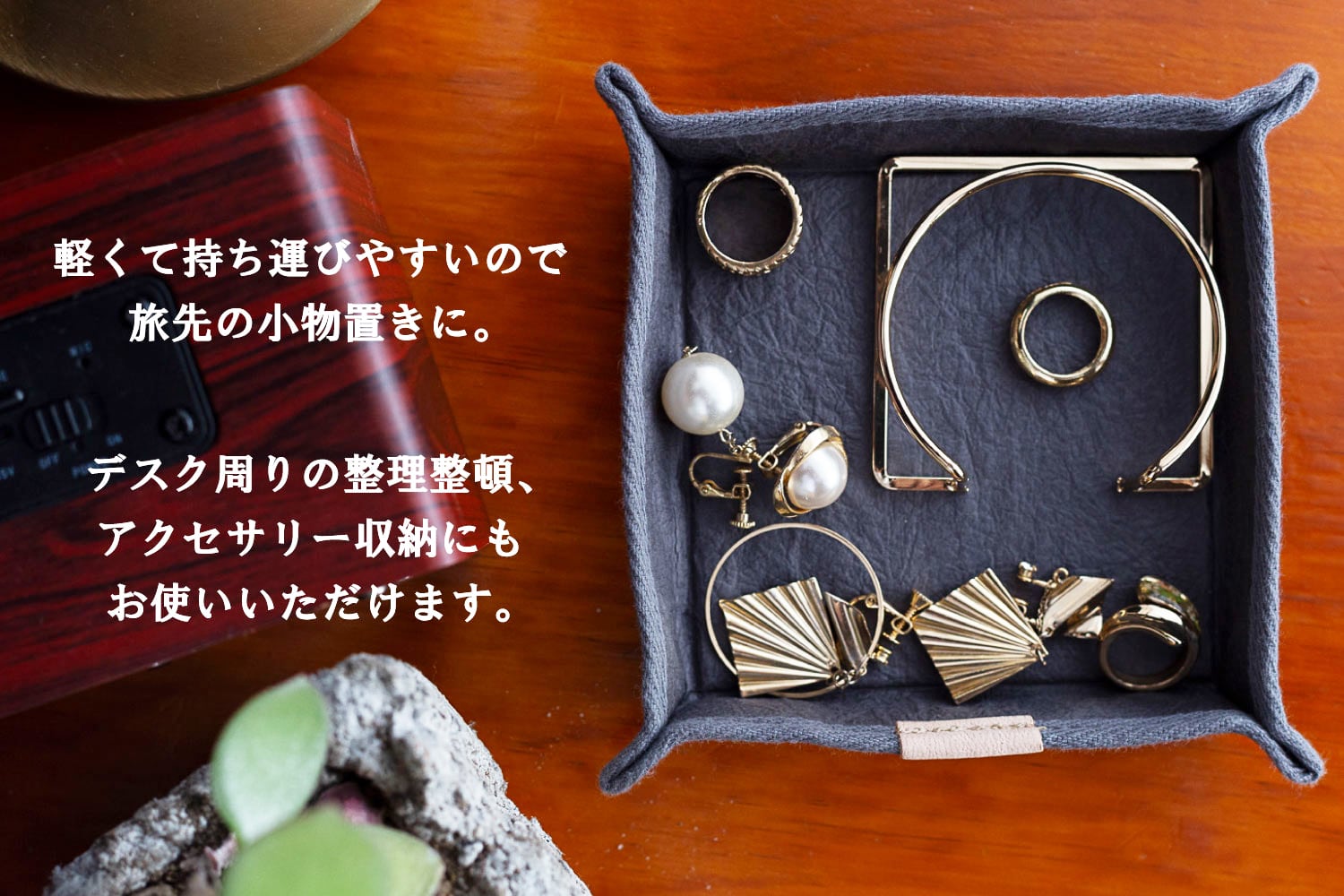 ■軽くて持ち運びやすいので、旅先の小物置きやデスク周りの整理整頓はもちろん、ご自宅でのアクセサリー収納にもおススメです。