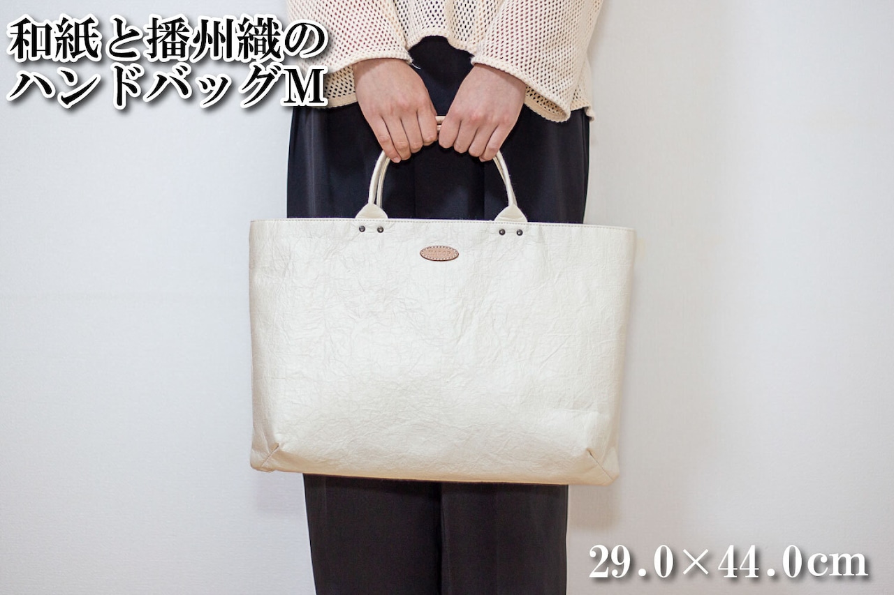 ■表地に杉原紙、裏地に播州織を使用。裏地に生地を使用することで丈夫になり、和紙特有の軽さを活かしたハンドバッグ。重さは230g。